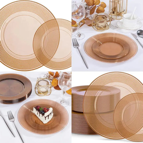 100 Pack Durable Clear Brown Plastic Plates - Disposable for 50 Guests, Ideal for Parties and Weddings (10 & 7)