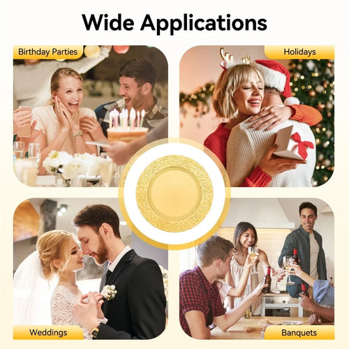 100 Pieces PP Round Charger Plates Set - RReusable Serving Plates Wedding Decorative Chargers Patterned Snack Trays Embosse