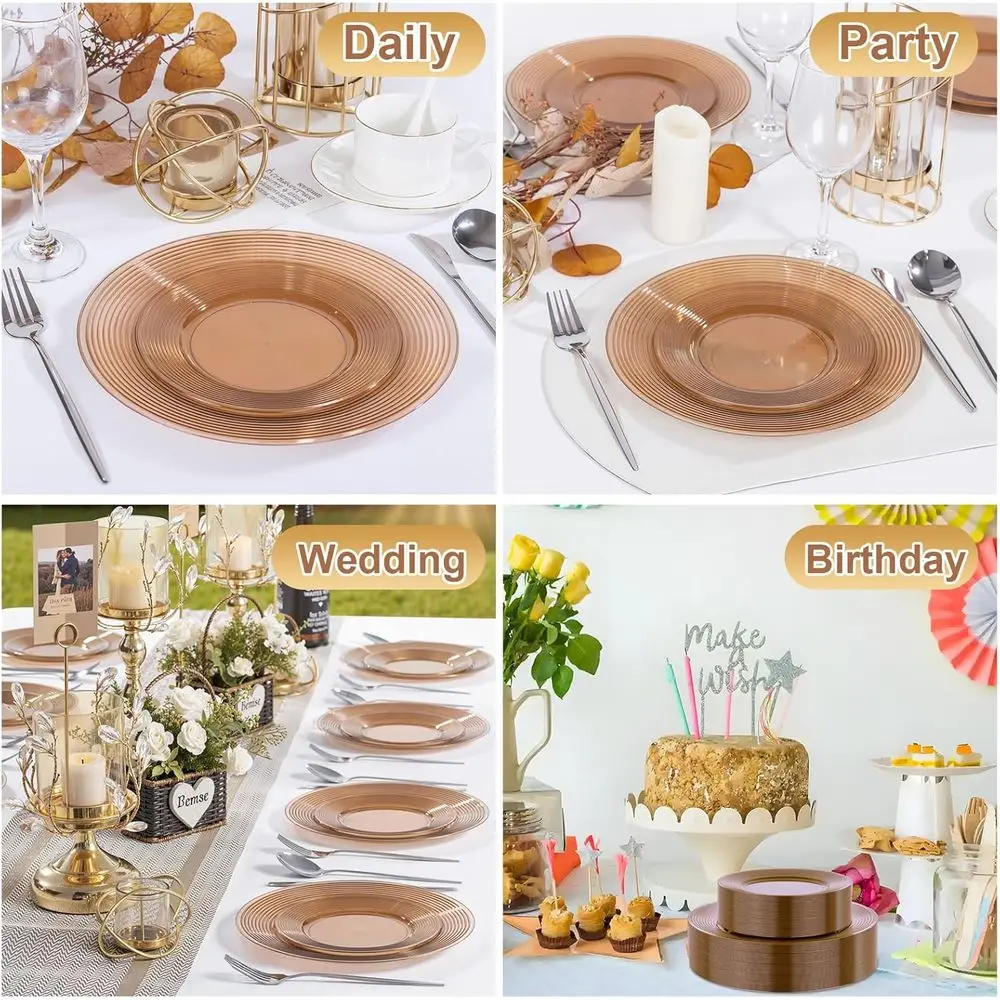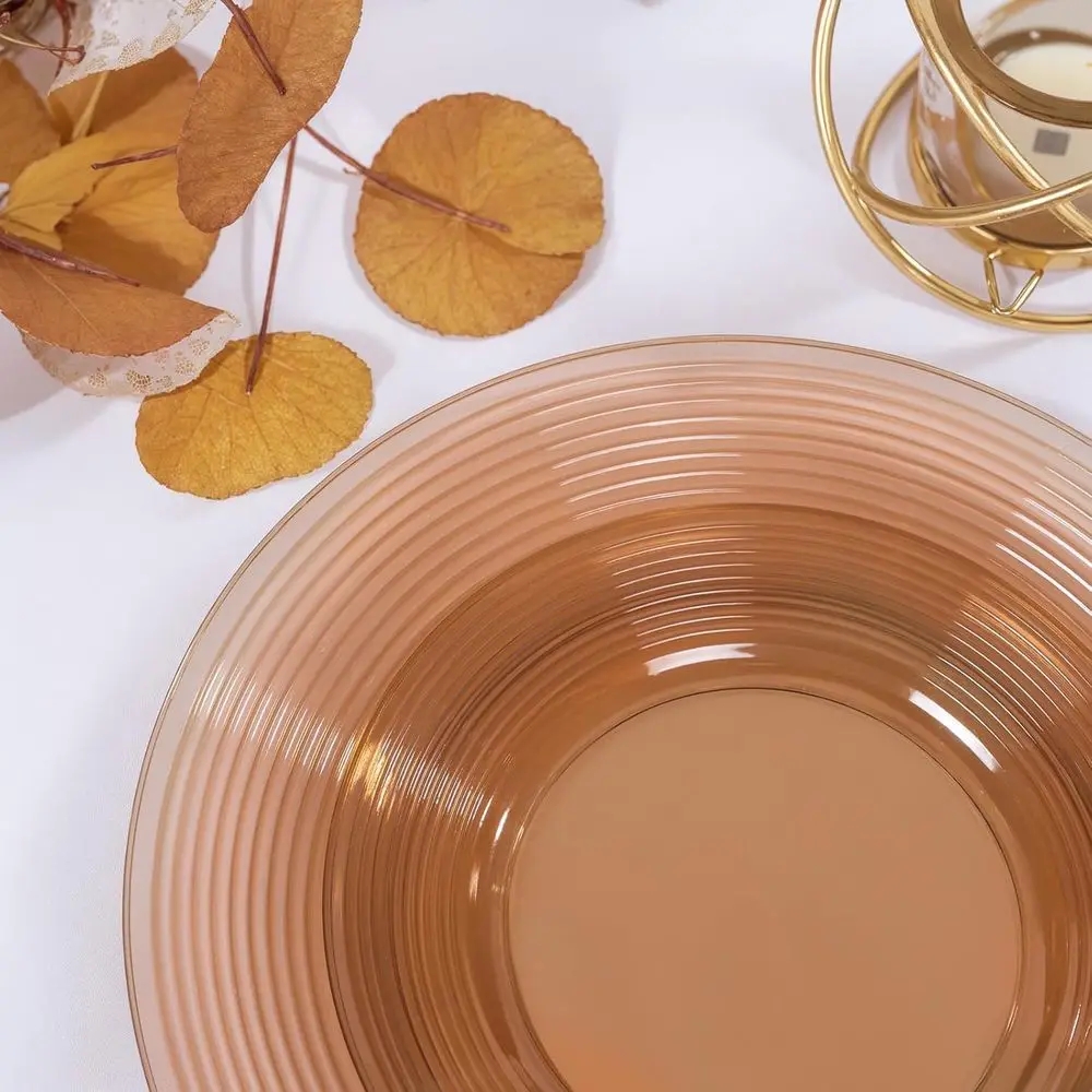 Suit any Occasions: With their elegant Mocha Mousse color and circular patterns, these clear plates present a sophisticated and timeless aesthetic, making them perfect for weddings, birthdays, picnics, holiday dinners, or casual get-togethers.