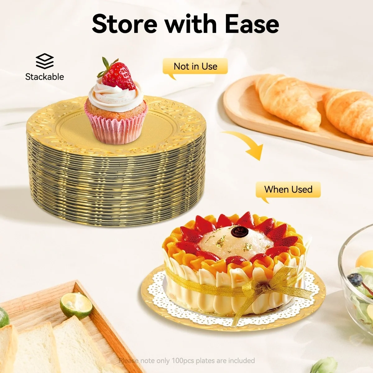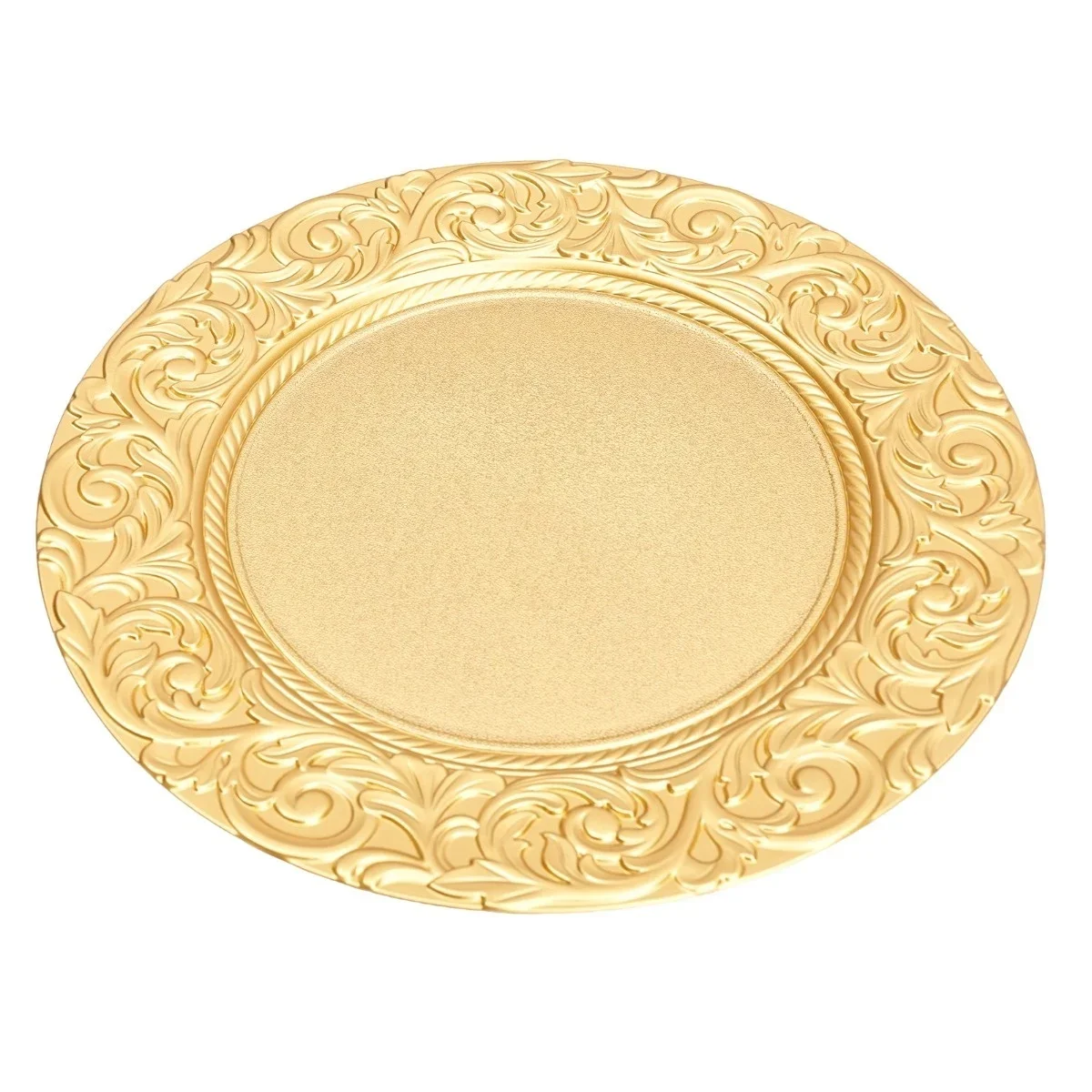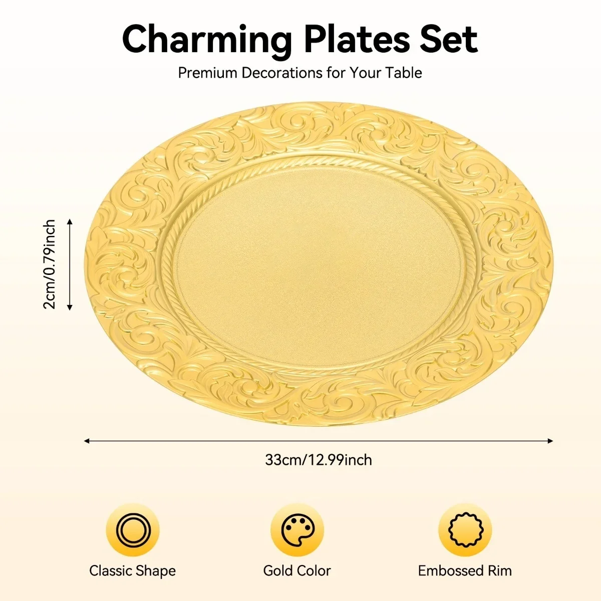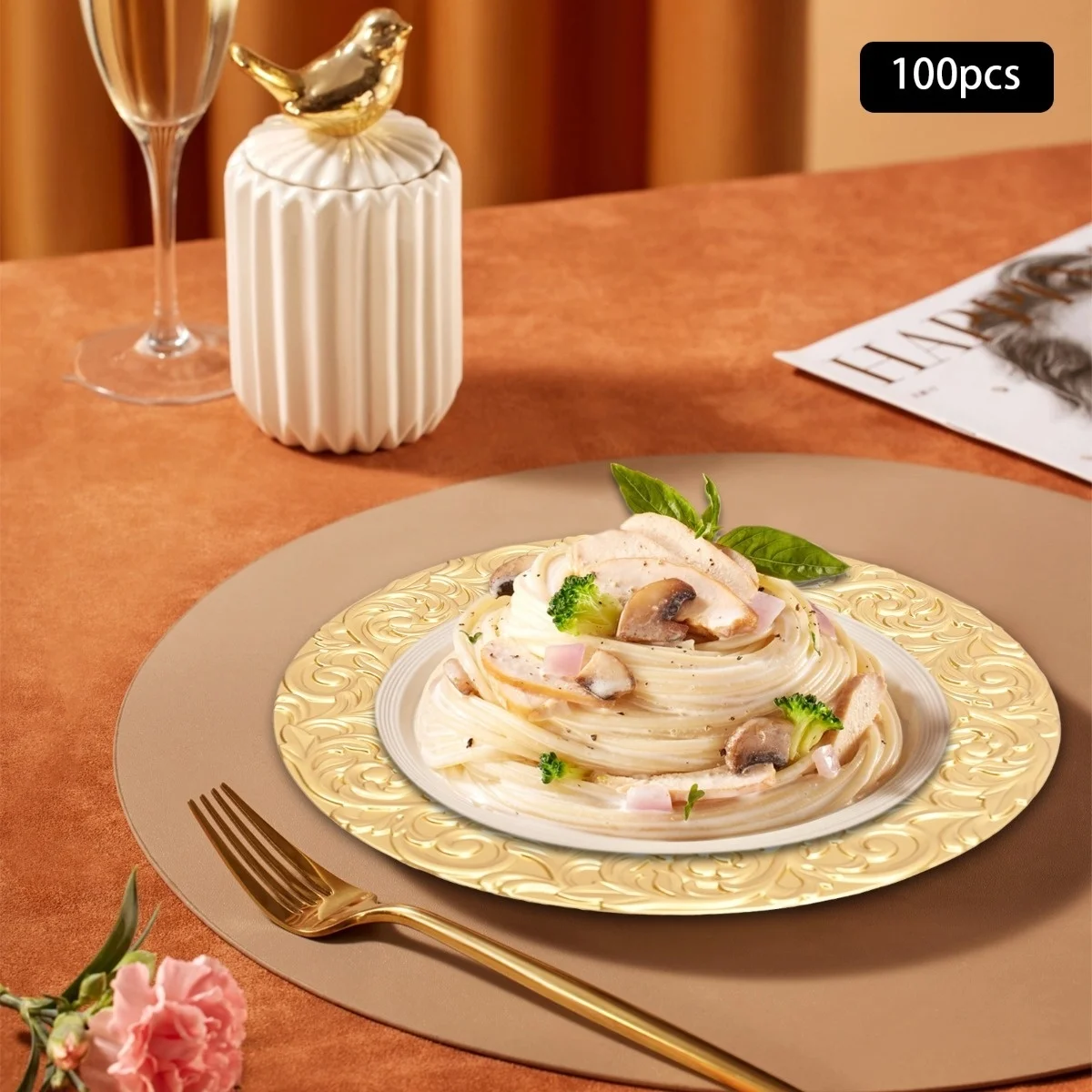 100 Pieces PP Round Charger Plates Set - RReusable Serving Plates Wedding Decorative Chargers Patterned Snack Trays Embosse