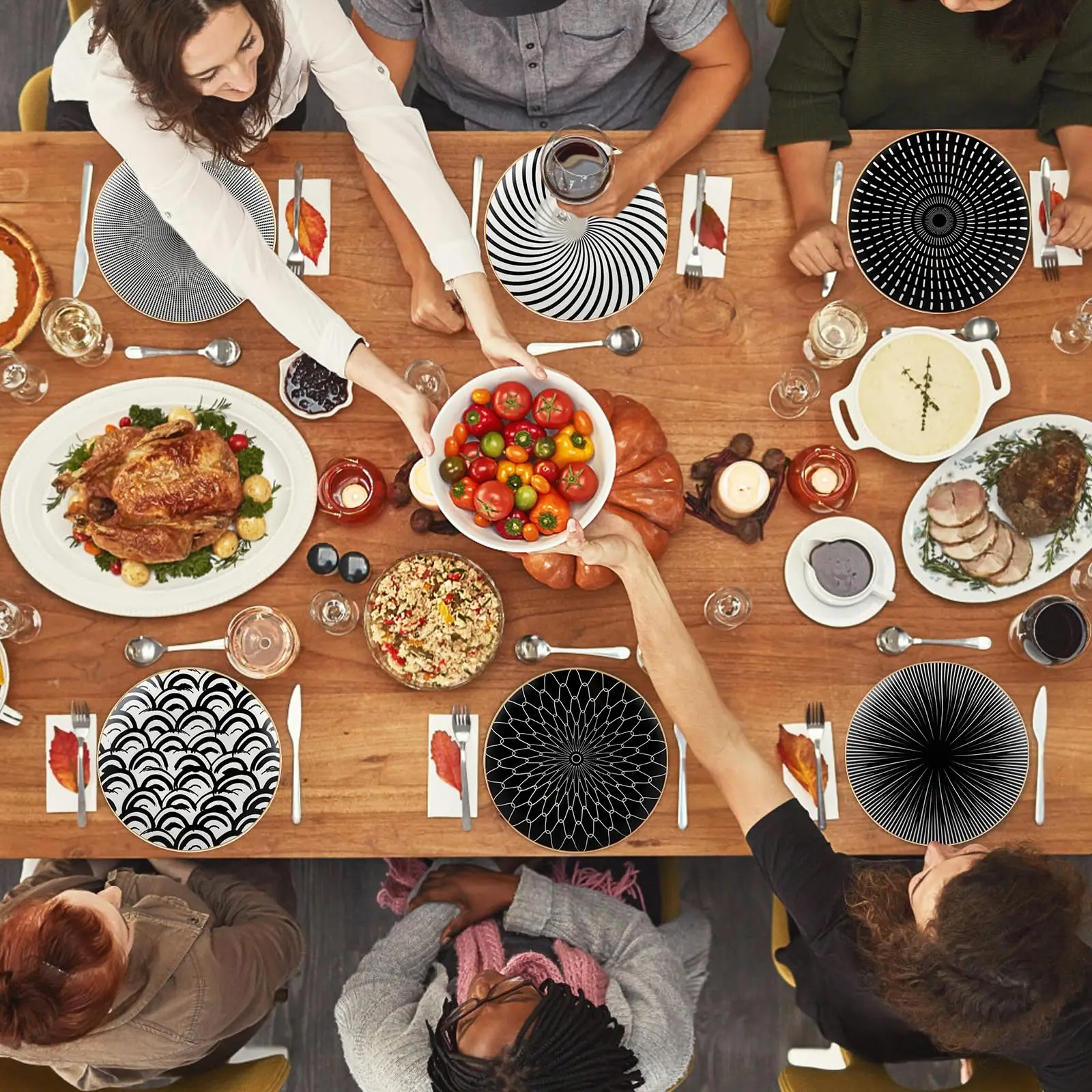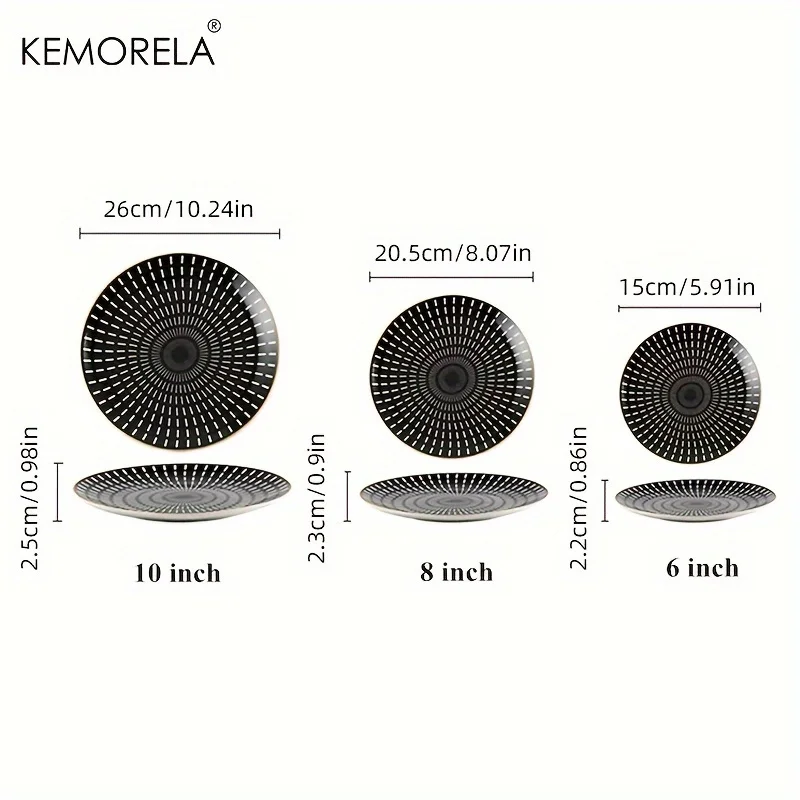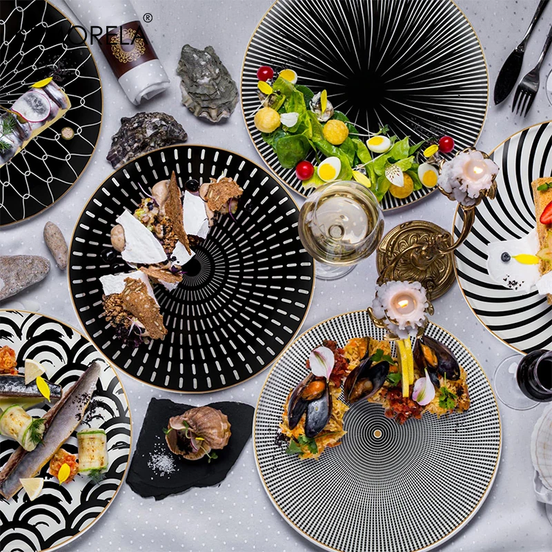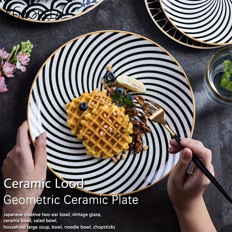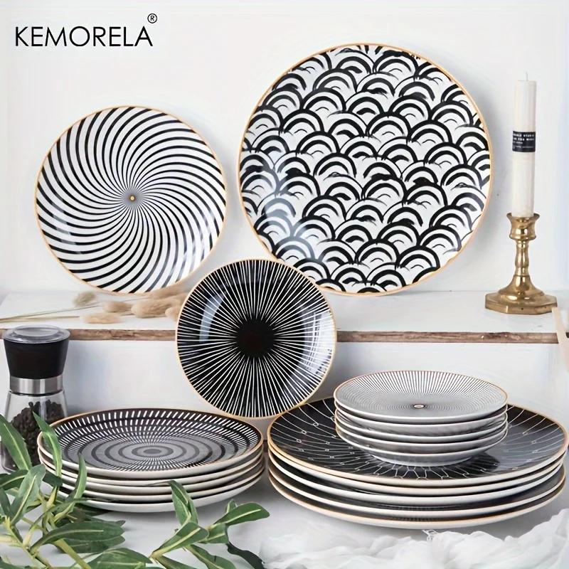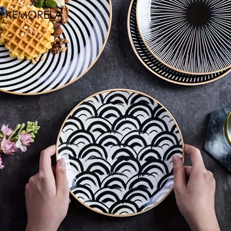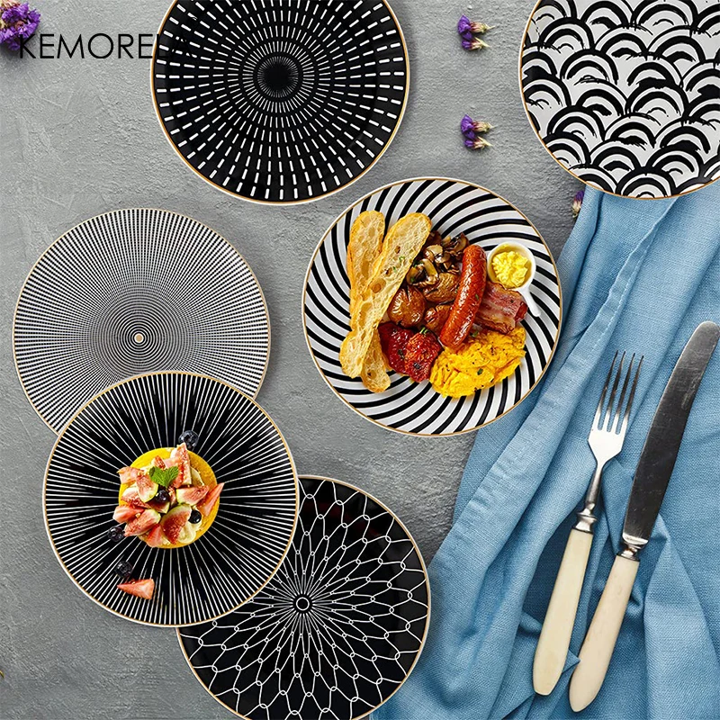 6PCS Tableware Phnom Penh Geometry Tableware 8/10 Inch Ceramic Dinner Plate Dish Porcelain Salad Plate Steak Serving Plate